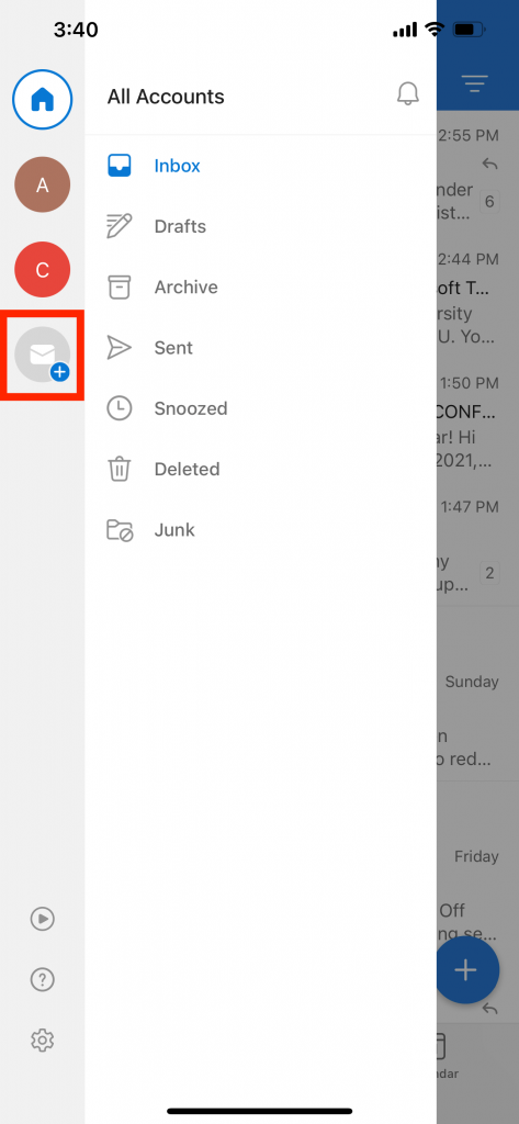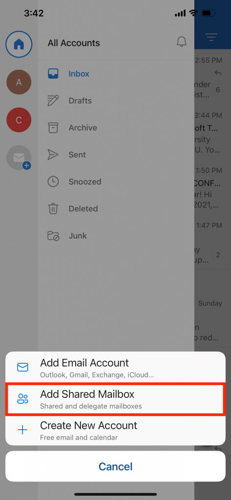 - After the account setup process completes, the shared mailbox will display in your account list within the Outlook for Android or iOS app