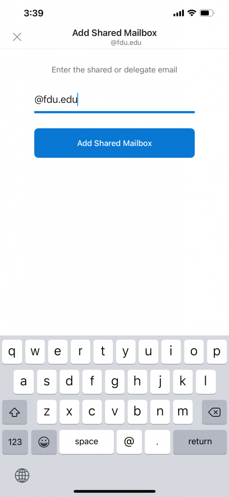 - Enter the name of the shared mailbox and tap Add Shared Mailbox when finished